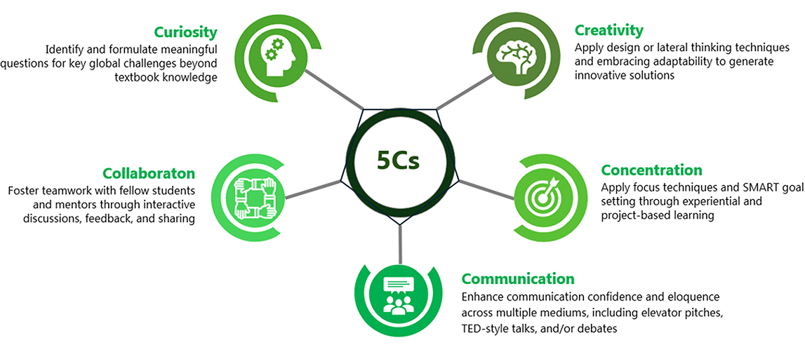 Through immersive educational experiences, we empower youth to drive positive change in their communities and beyond, fostering the essential 5Cs: a legacy ofCuriosity to explore new ideas, Creativity to design solutions, Communication to share their vision, Collaboration to work with others, and Concentration to focus on impactful outcomes