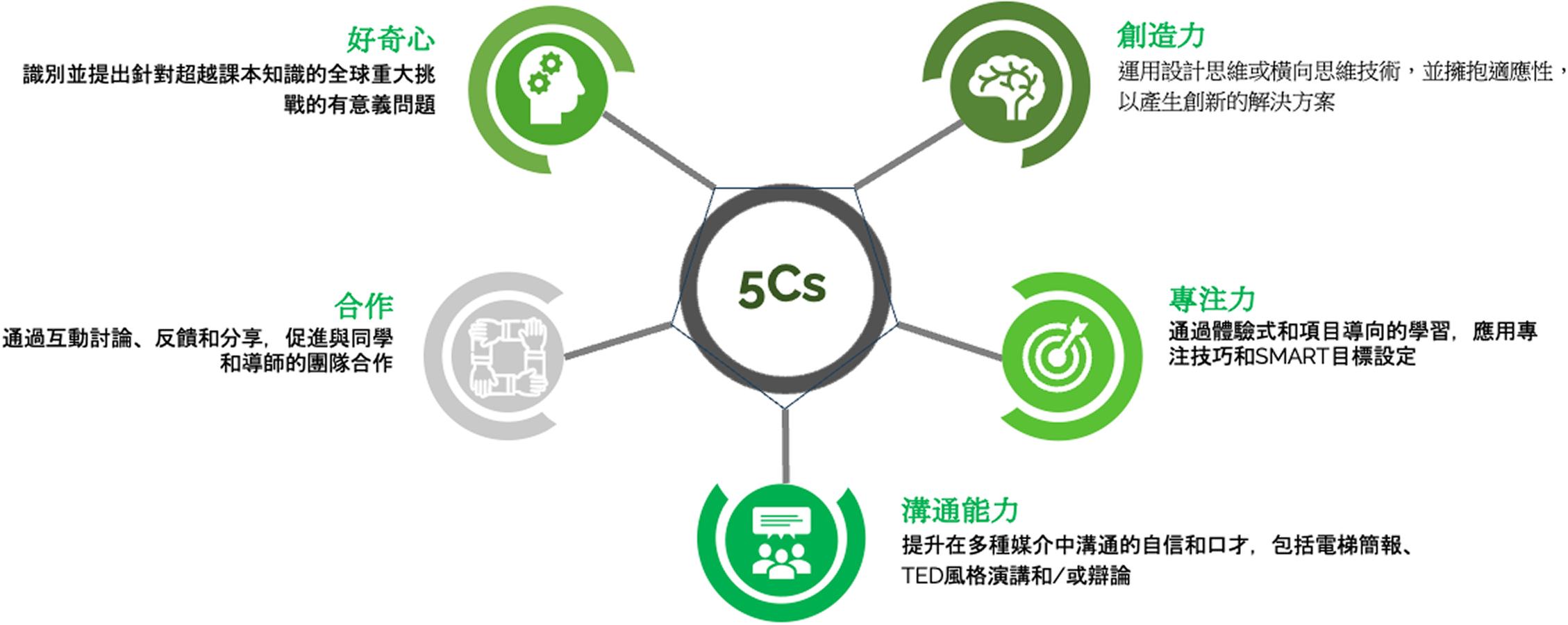 透過沉浸式的教育體驗,我們賦能年輕人推動社區及更廣領域的正面改變,培養關鍵的「5C」能力:以好奇心探索新想法、以創意設計解決方案、以溝通分享願景、以協作與他人合作,以及以專注力聚焦於具影響力的成果。
